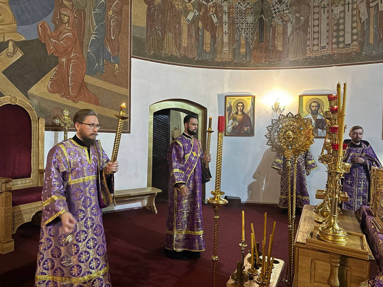 После великого славословия епископ Николай совершил чин Воздвижения Креста.