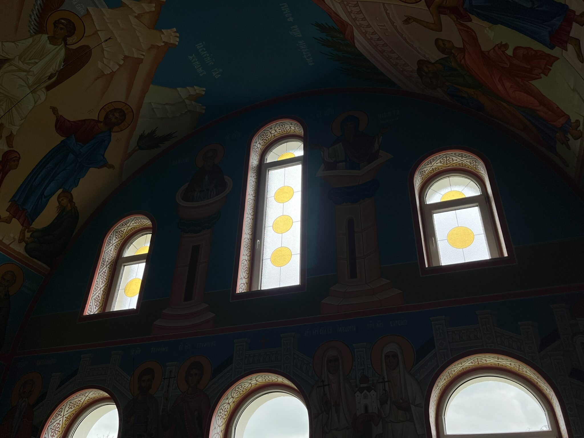Продолжается благоустройство Храма Сергия Радонежского в Черняховске. На окна установили новые витражи.