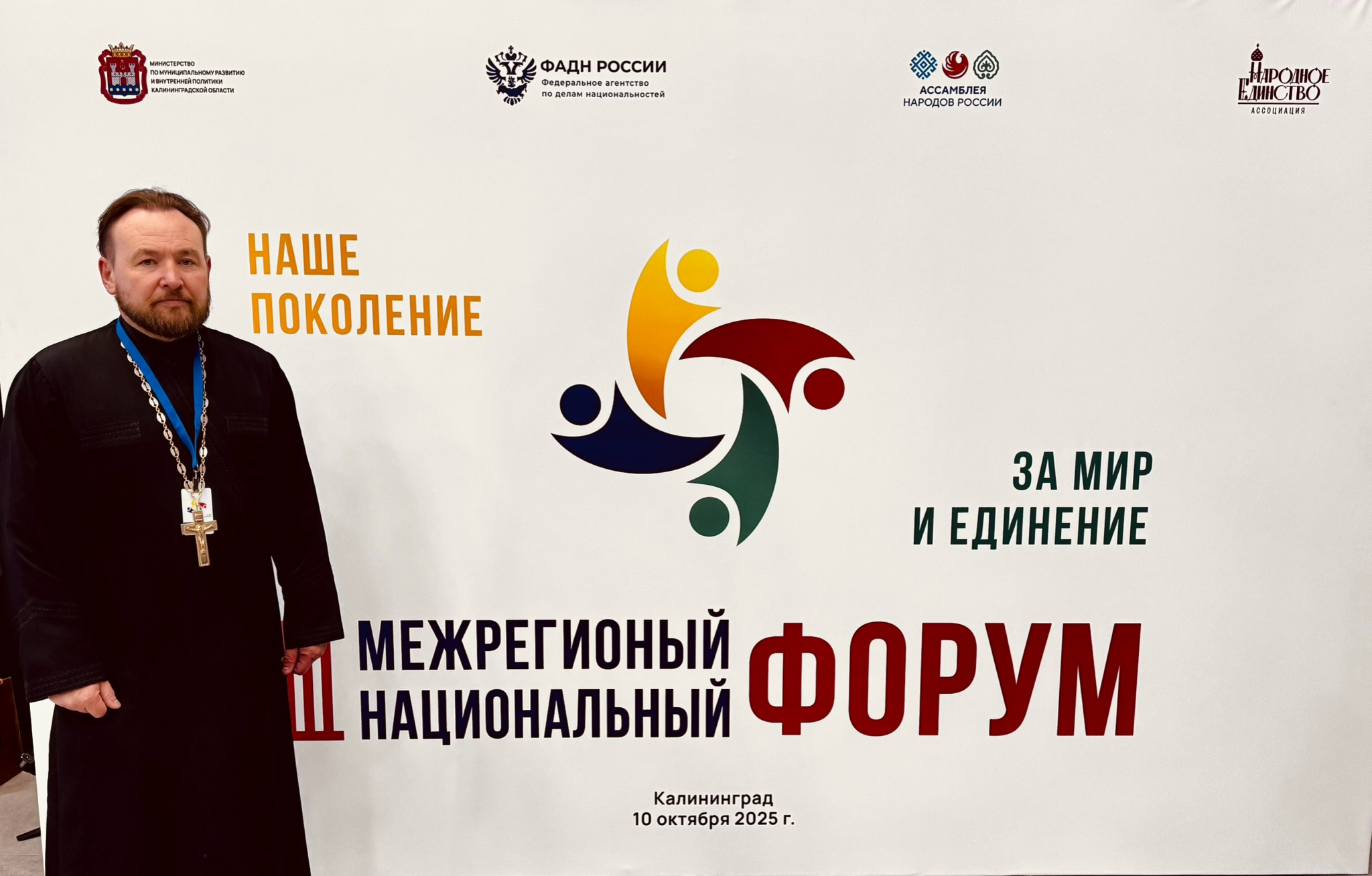 Руководитель Отдела по социальному служению и благотворительности Черняховской епархии протоиерей Георгий Матвеев посетил III Межрегиональный национальный форум «Наше поколение за мир и единение», который прошел 10 октября в БФУ имени Канта и объединил участников из 15 регионов России.