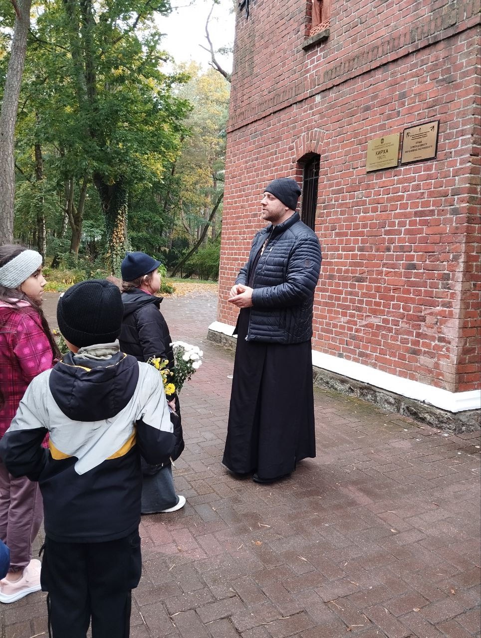 Совместно с настоятелем Свято-Георгиевского Храма иереем Димитрием Холизнёвым, учителем 4б класса Дроздовой Е. Д. и мамой одного из учащихся Арутюнян В. С. ребята посетили Храм Серафима Саровского (1907; 1992) и Часовню-памятник в честь иконы Божьей Матери «Всех скорбящих радость» (1994) в г. Светлогорске. О чувствах, которые мы испытали, хотелось бы рассказать особо.