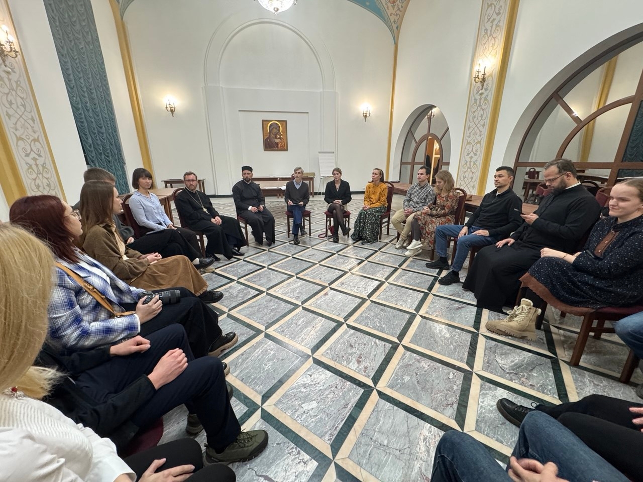 В субботу, 8 ноября, семинар по организации подростковых клубов начался с Божественной литургии в верхнем храме Собора Христа Спасителя.