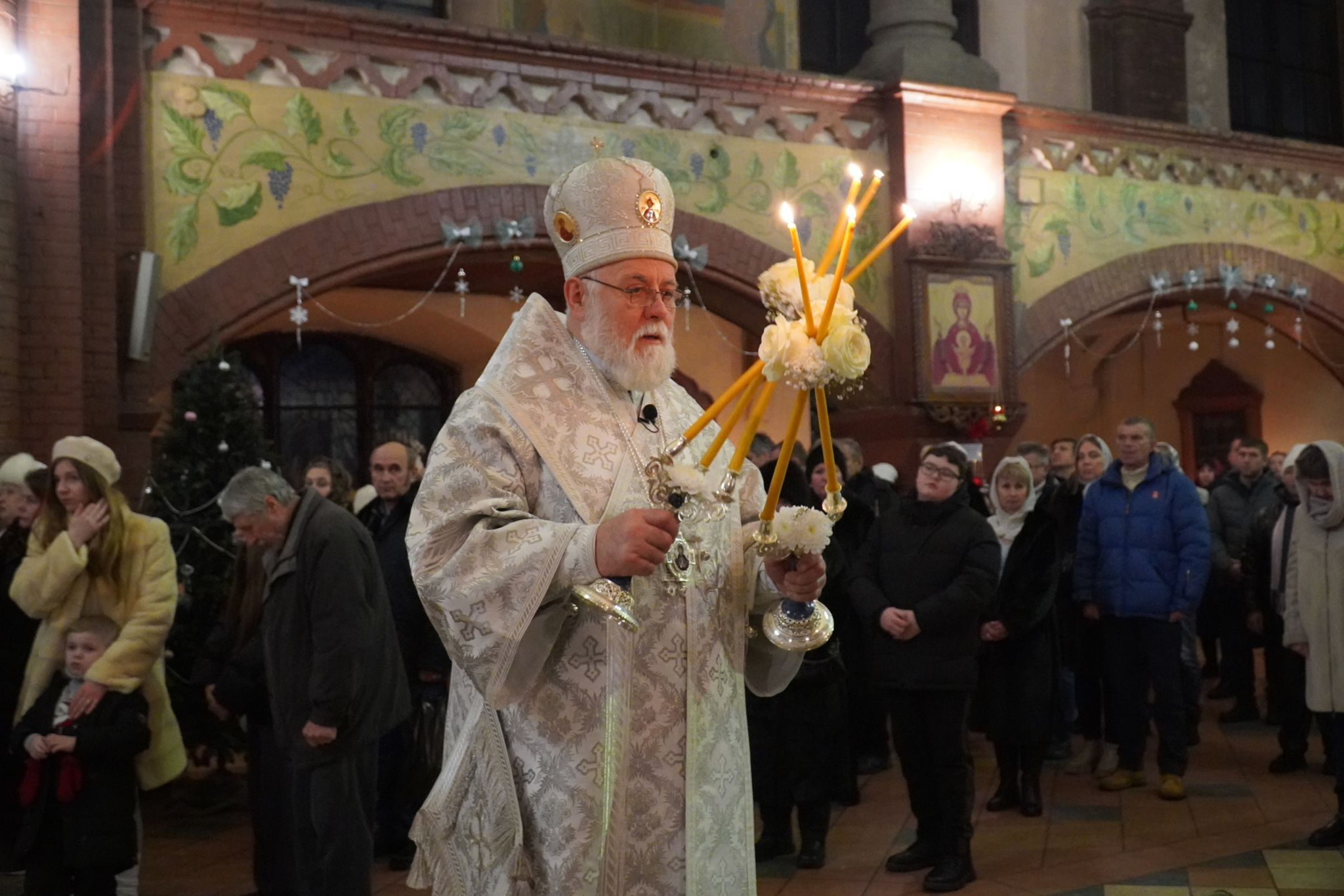 В ночь с 6 на 7 января 2026 года в праздник Рождества Господа Бога и Спаса нашего Иисуса Христа епископ Черняховский и Славский Николай совершил Божественную литургию в кафедральном соборе Архангела Михаила города Черняховска.