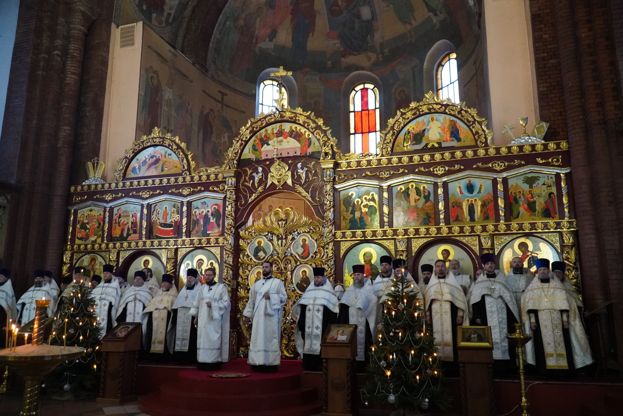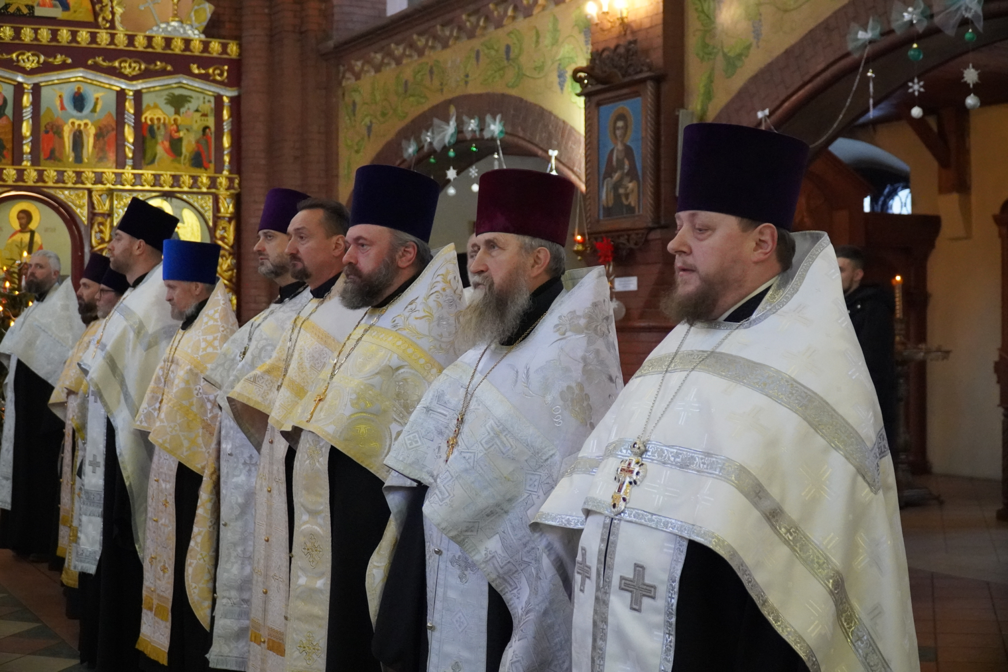 В богослужении приняли участие благочинные Восточного и Неманского округа, настоятели храмов Черняховской епархии. По установившейся традиции на Святках все священники епархии собираются вместе, чтобы поздравить друг друга и правящего архиерея с праздником Рождества Христова и вместе послужить литургию или Великую Вечерню.