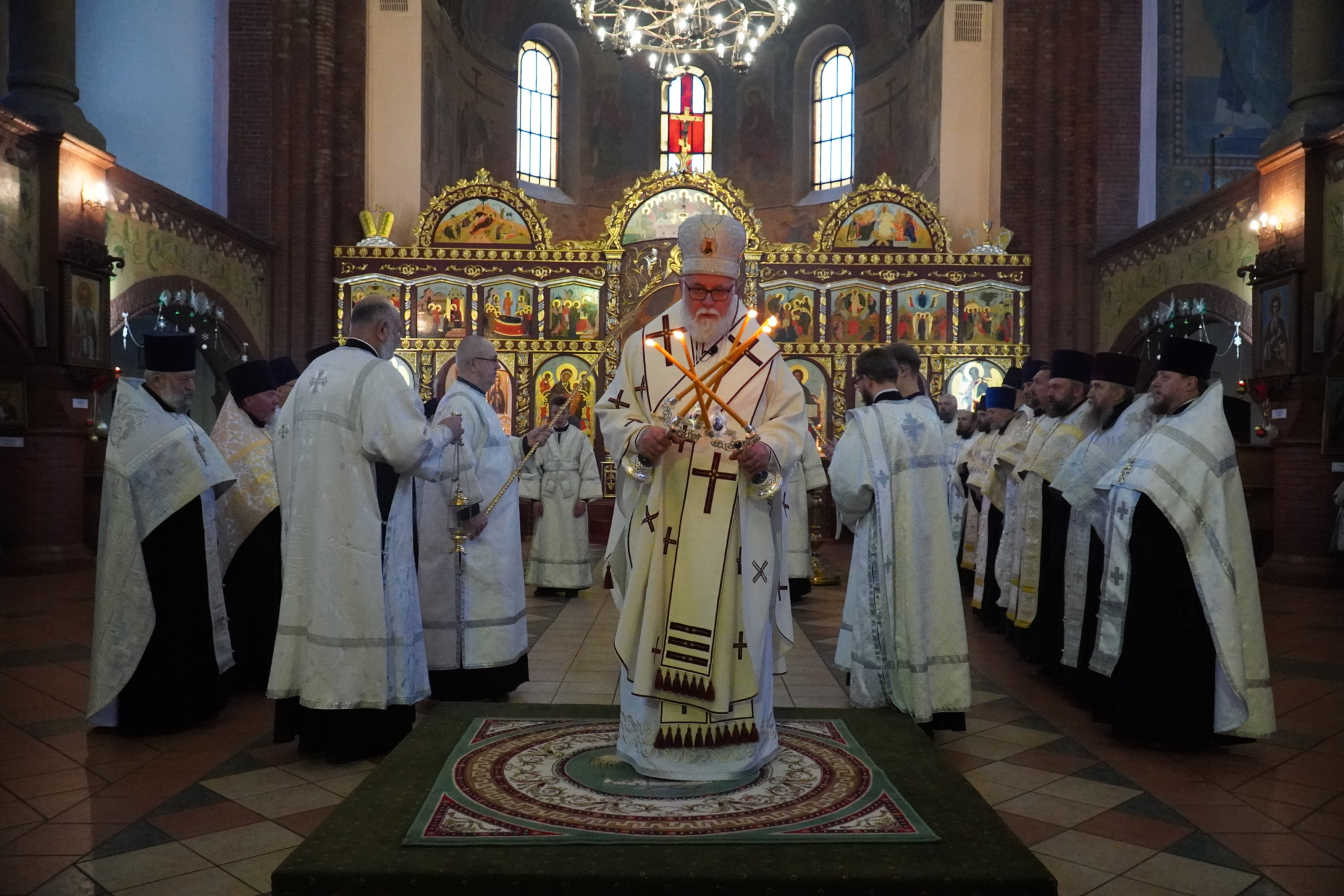 11 января в кафедральном соборе Архангела Михаила епископ Черняховский и Славский Николай совершил великую вечерню праздника Рождества Христова.