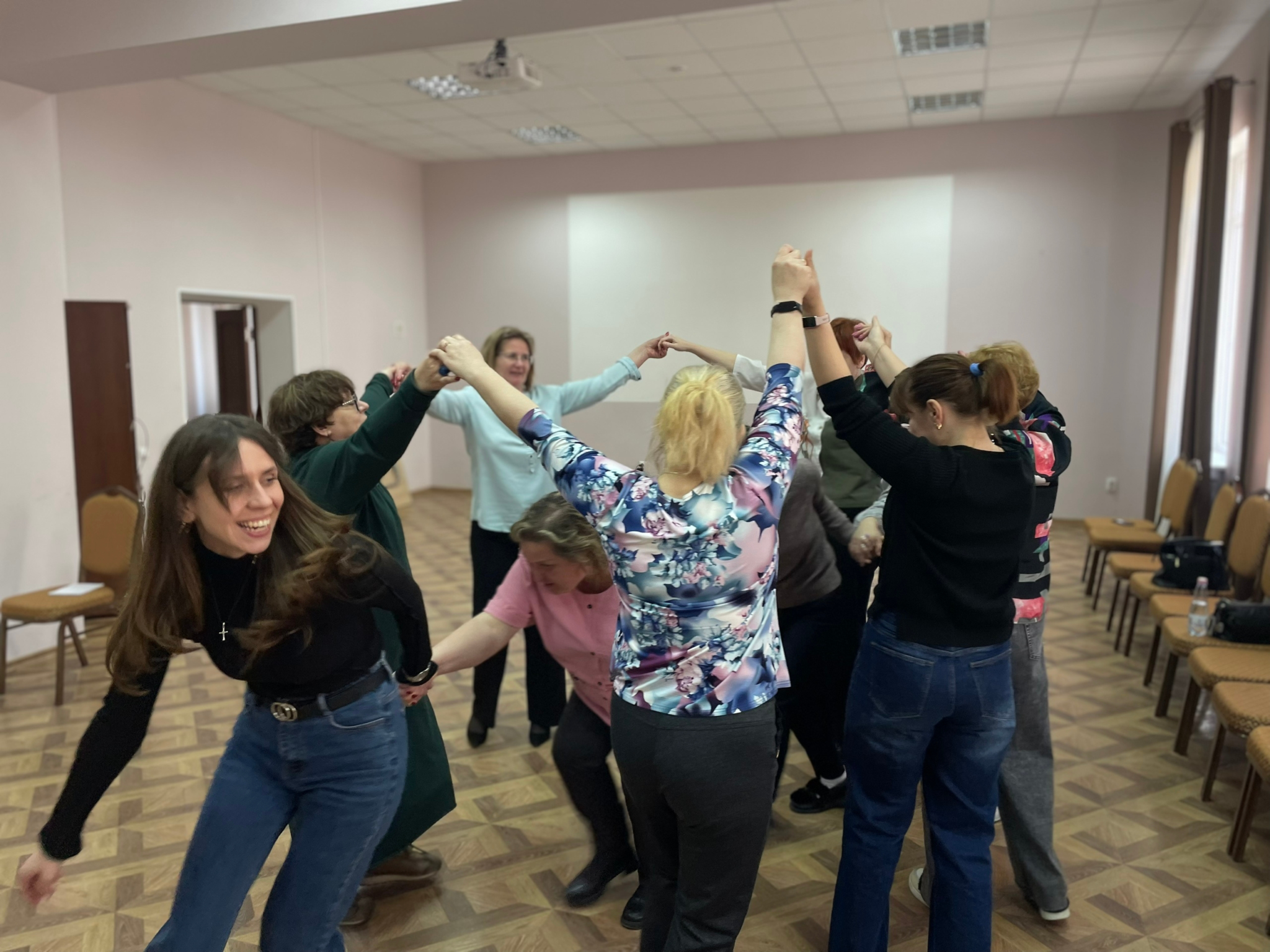 3 апреля в духовно-просветительском центре «Преображение» в Черняховске состоялся заключительный день обучающего интенсива, в рамках которого параллельно работали две проектные группы. Вели секции методисты ЦМС СДНВ — Соколова Марина Евгеньевна и Осипова Ольга Александровна.