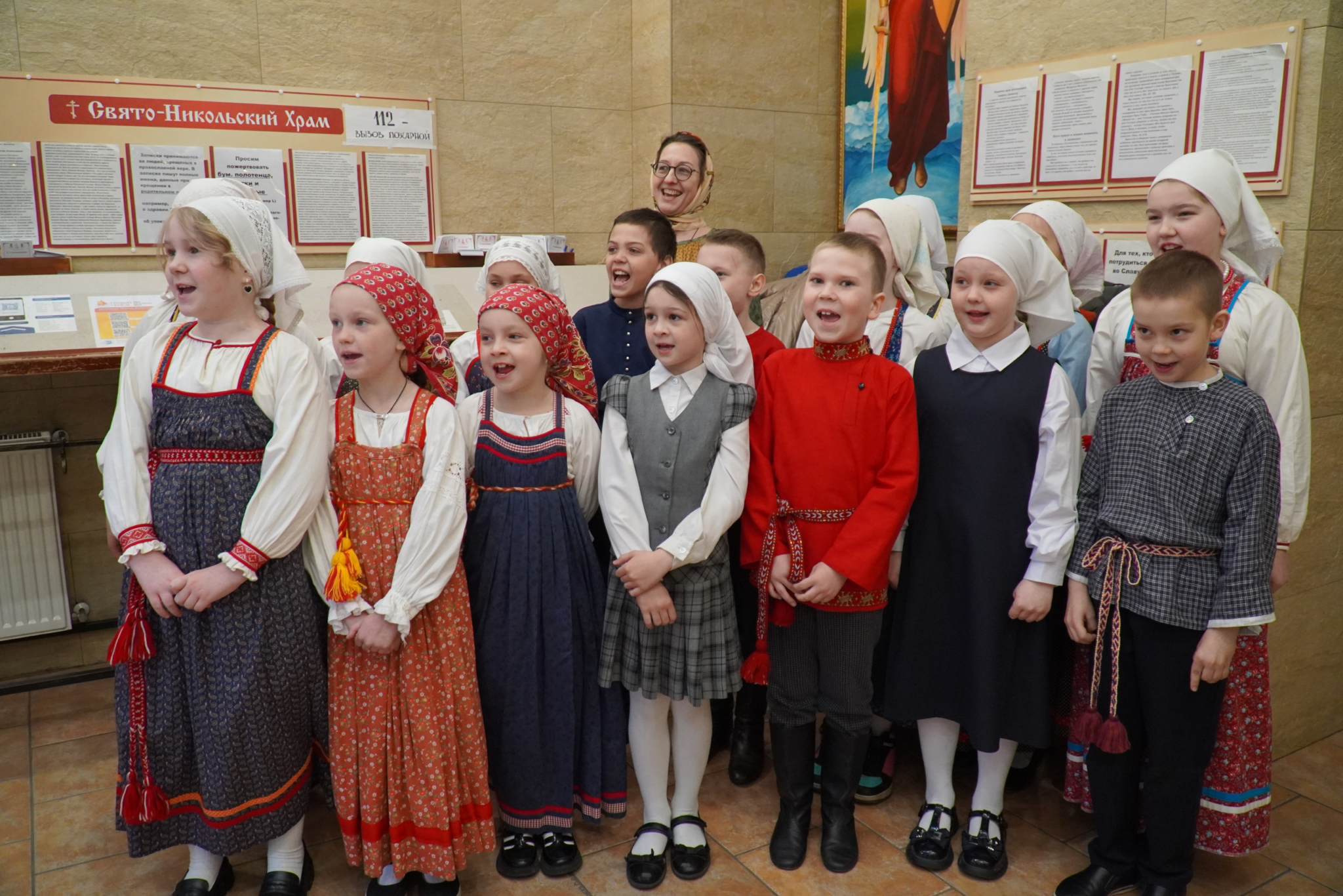 С праздничными пасхальными песнопениями владыку встретили учащиеся детского фольклорного ансамбля «Тимоня» из средней школы N19 г.Калининграда.