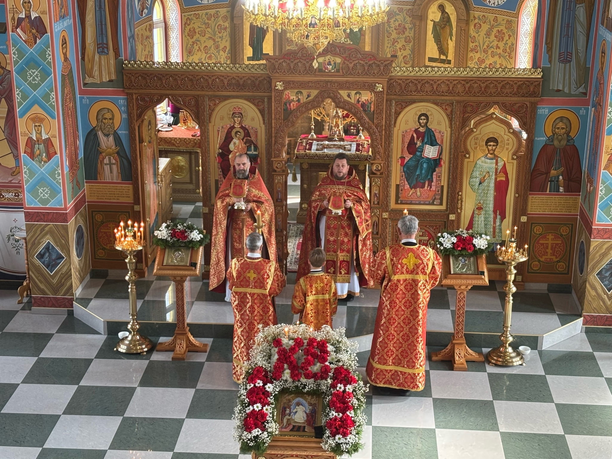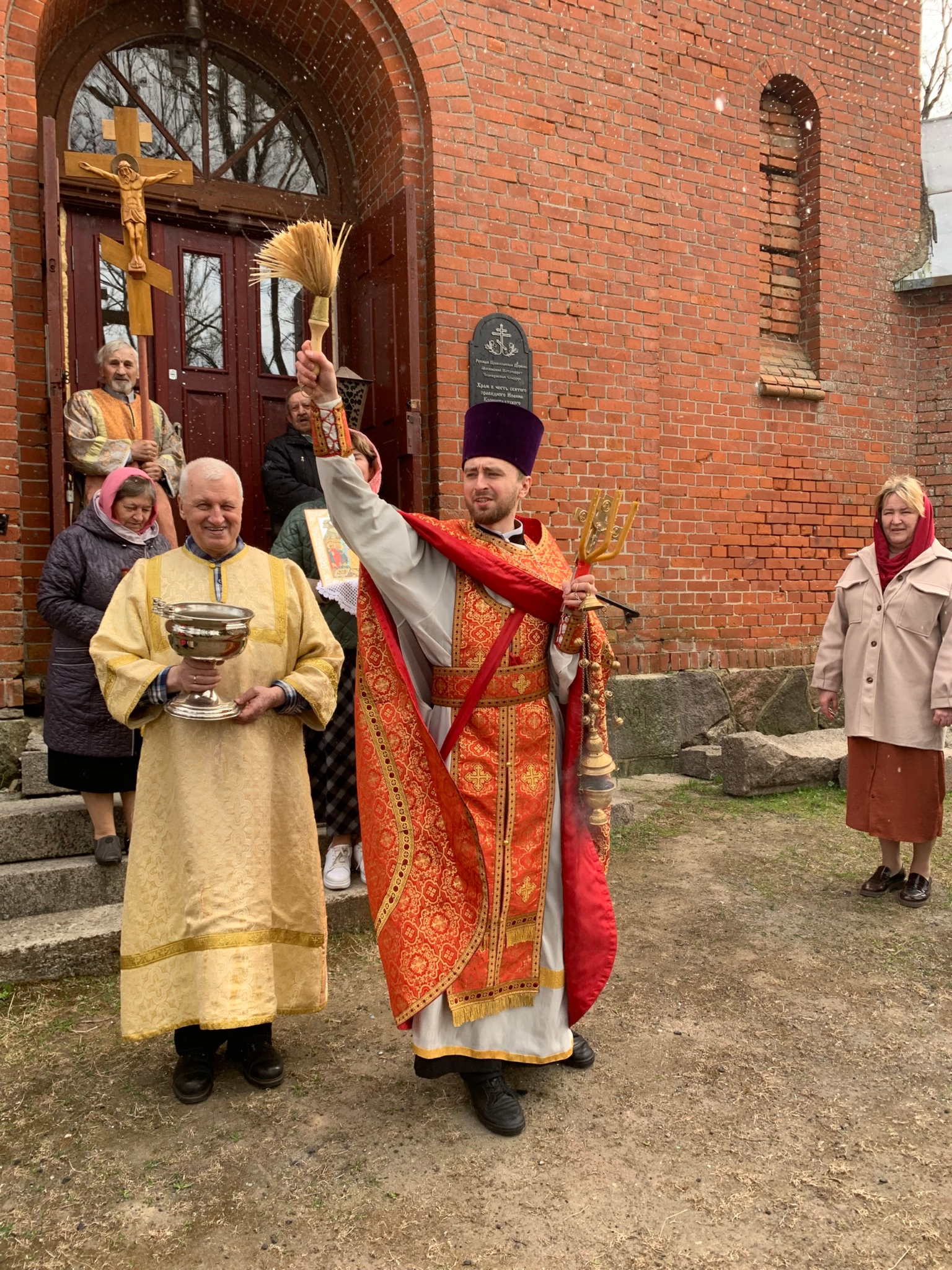По окончании Божественной литургии дружно прошли крестным ходом вокруг храма.