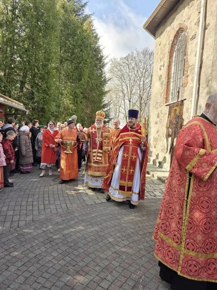 Утро началось с чудесной встречи. Фольклорный ансамбль «Тимоня» встретил епископа Черняховского и Славского Николая Пасхальным тропарём и звонким возгласом: «Христос Воскресе!» А когда двинулся крестный ход, к «Тимоне» присоединились кадеты школы — и уже все вместе, единым хором, славили Светлое Воскресение.